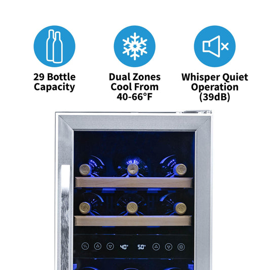 The Newair 14.8" 29-Bottle Stainless Steel Built-In Dual Zone Wine Fridge has dual temp...Regular price From $919.99Unit price perPay over time with Affirm. See if you qualify at checkout.