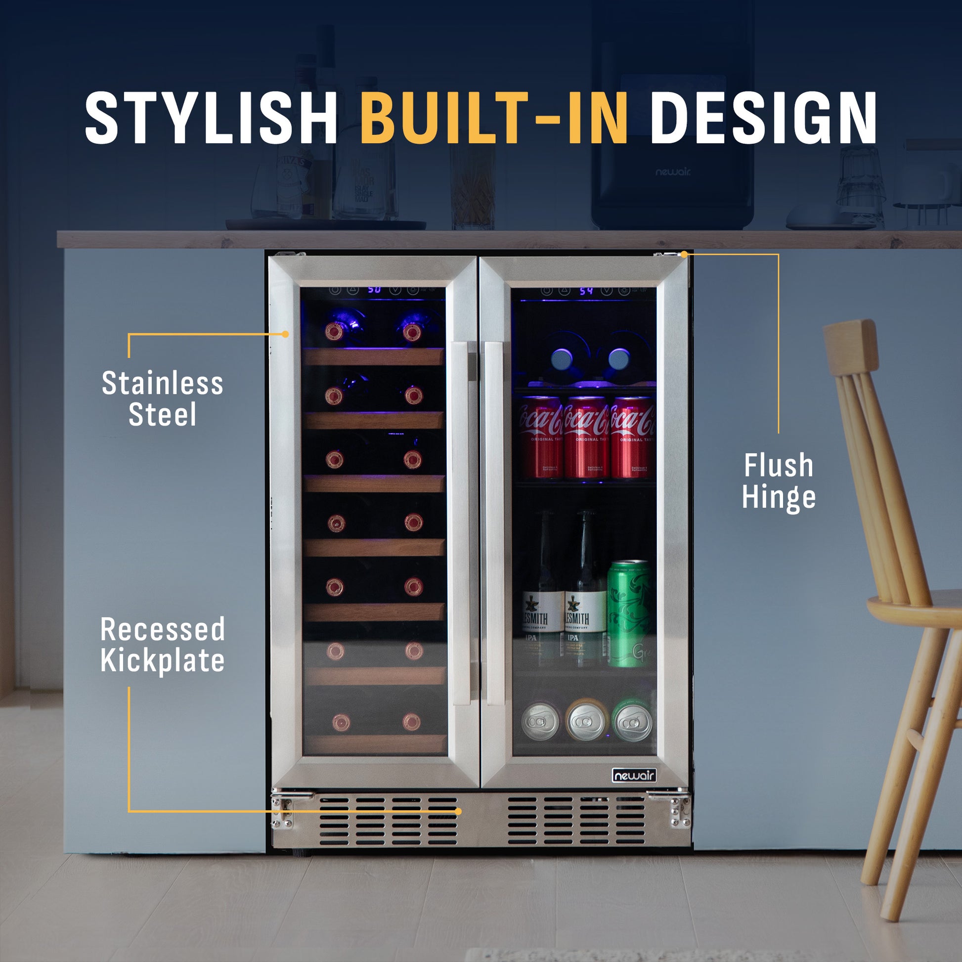Newair® 24” Stainless Steel Dual-Zone Wine & Beverage Cooler, Built-In or Freestanding