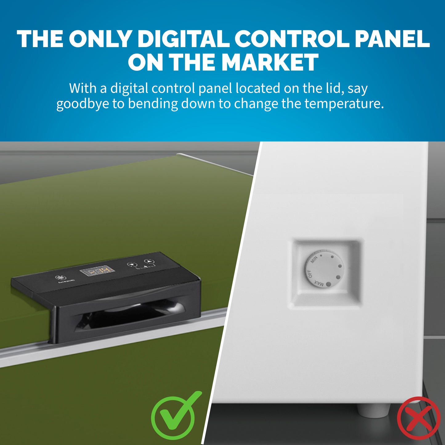 - The digital temperature control panel lets you set the temperature between -14° F and 50° F.