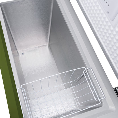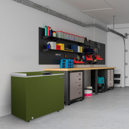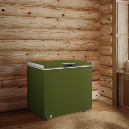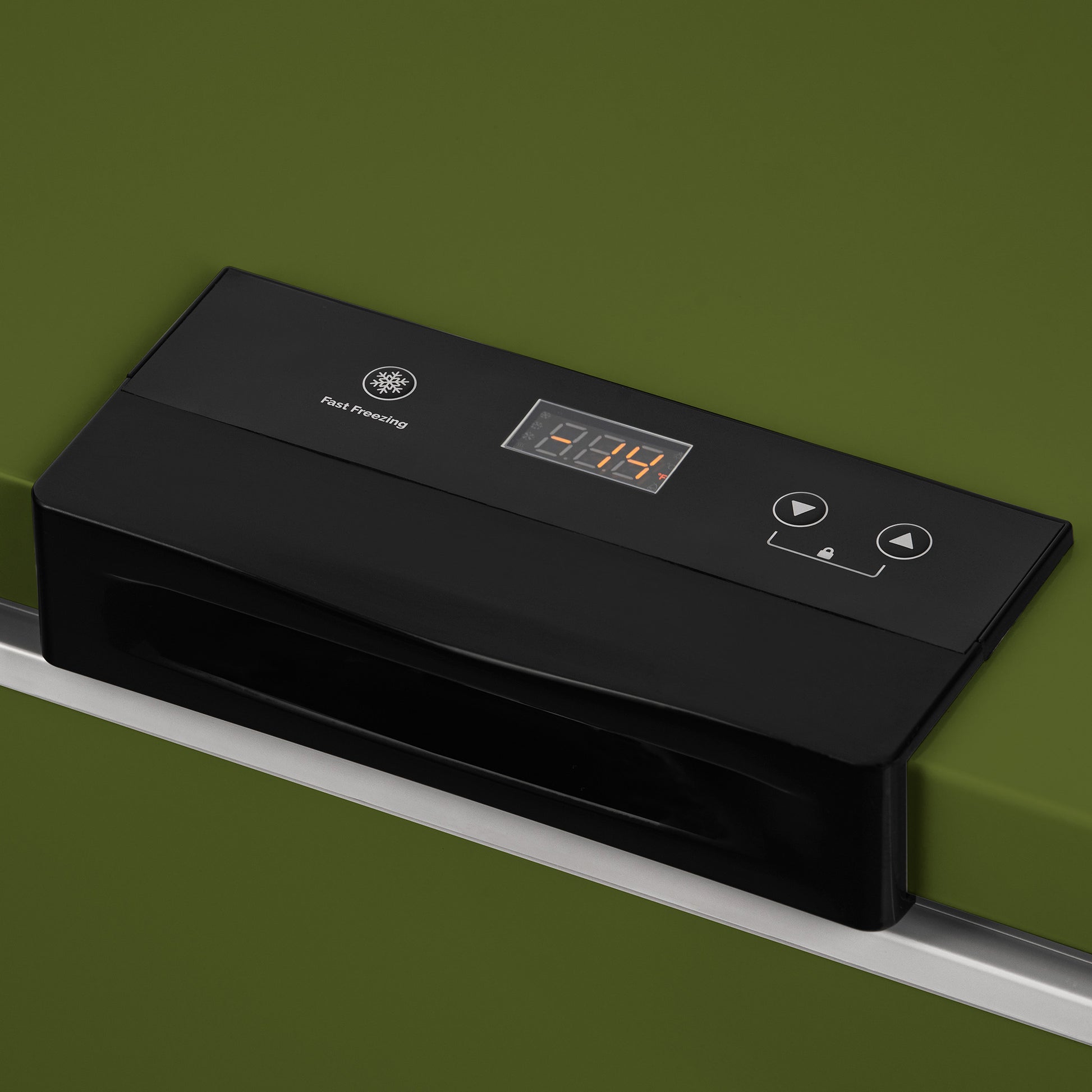 This garage ready deep freezer in Olive Green makes a statement in your laundry room, game room, office, or bunker. The defrost drain located in the front makes it easy to clean between restocks. The quiet compressor works silently in any room. Get away from outdated appliances and give your apartment or home the modern upgrade it’s been waiting for.