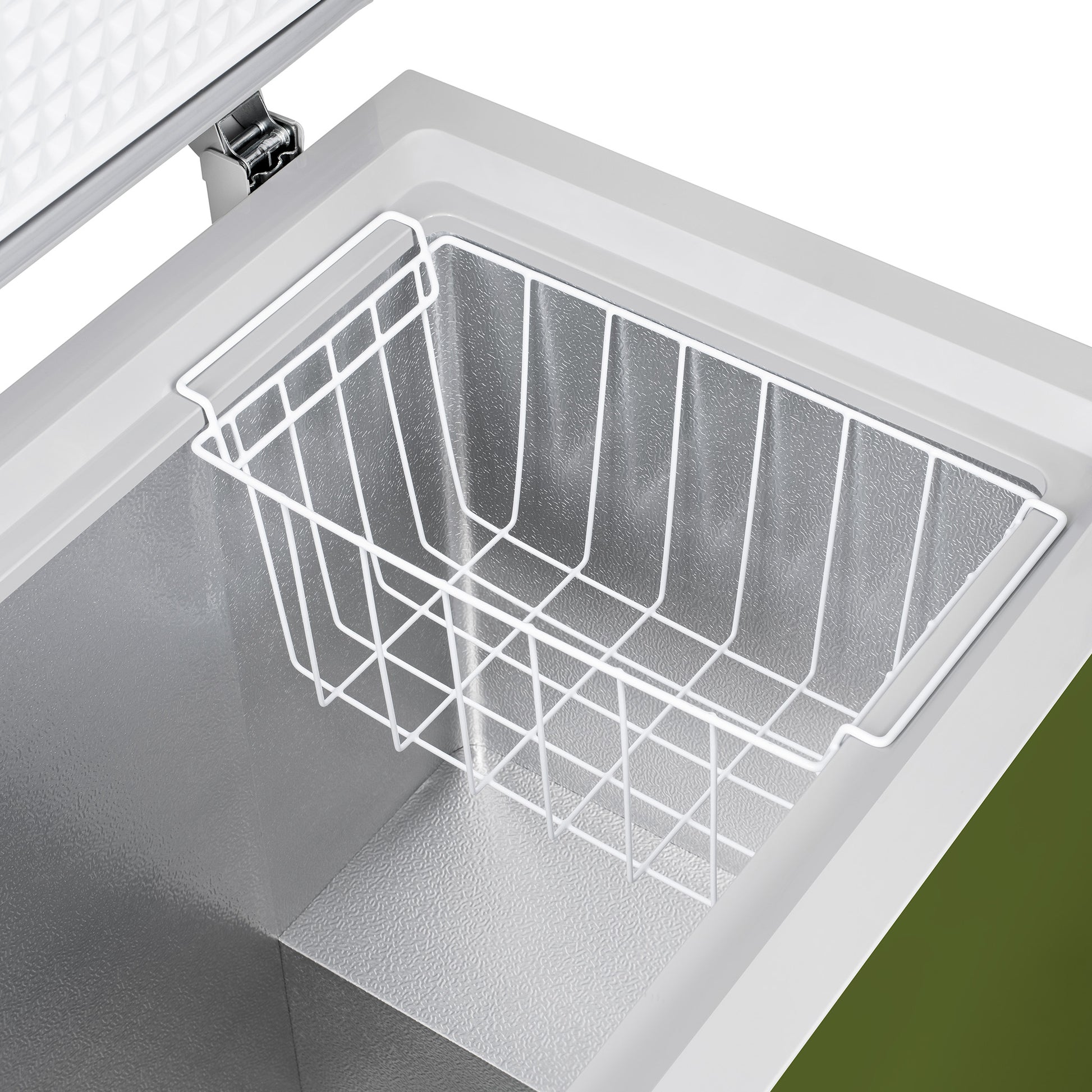 Maximize your frozen storage with the Newair 6.7 Cu. Ft. Compact Chest Freezer, the ideal solution for families, hunters, fishers, homesteaders, or anyone who loves to stock up on frozen goods. This versatile chest freezer features a user-friendly digital temperature control panel, allowing you to precisely set the ideal temperature (-14°F to 50°F). With Fast Freeze mode, your food chills quickly, locking in freshness and flavor. The convenient stay-open lid makes restocking a breeze, while the door-activated LED light illuminates your finds. This compact, garage-ready freezer also includes a removable storage basket for easy organization and a front defrost drain for hassle-free maintenance.