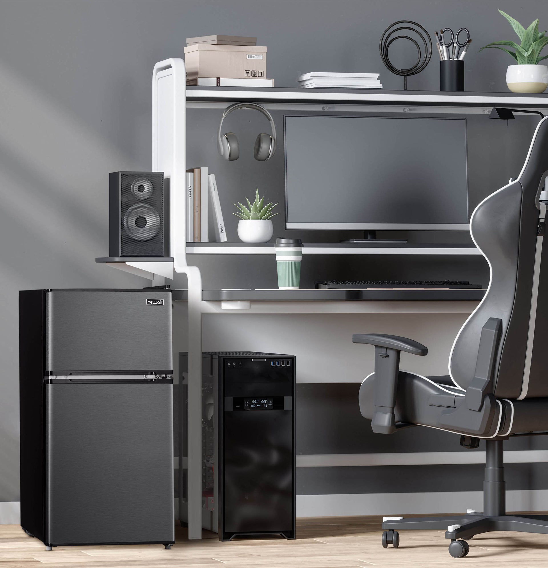 The Newair 3.1 Cu. Ft. Compact Mini Fridge with Freezer delivers full-sized convenience in a space-saving design, making it ideal for apartments, dorm rooms, offices, and RVs. This mini fridge with freezer features adjustable shelves, a crisper drawer, and a dedicated bottle rack with room for two-liter drinks, so you can easily customize storage for snacks, beverages, and frozen essentials. A reversible door and freestanding design let it fit anywhere, while Energy Star certification ensures quiet, efficient cooling that saves on energy costs.