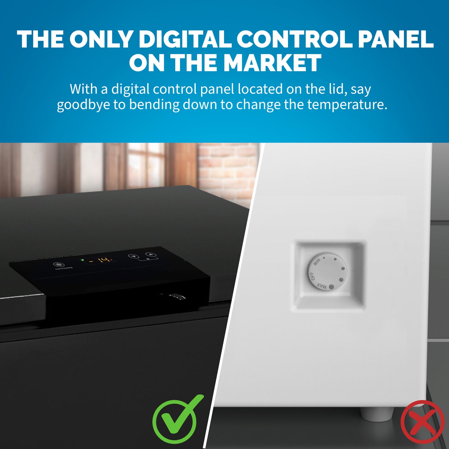 - The digital temperature control panel lets you set the temperature between -14° F and 50° F.