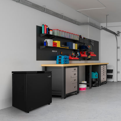 This garage ready deep freezer in Cool Gray makes a statement in your laundry room, game room, office, or bunker. The defrost drain located in the front makes it easy to clean between restocks. The quiet compressor works silently in any room. Get away from outdated appliances and give your apartment or home the modern upgrade it’s been waiting for.