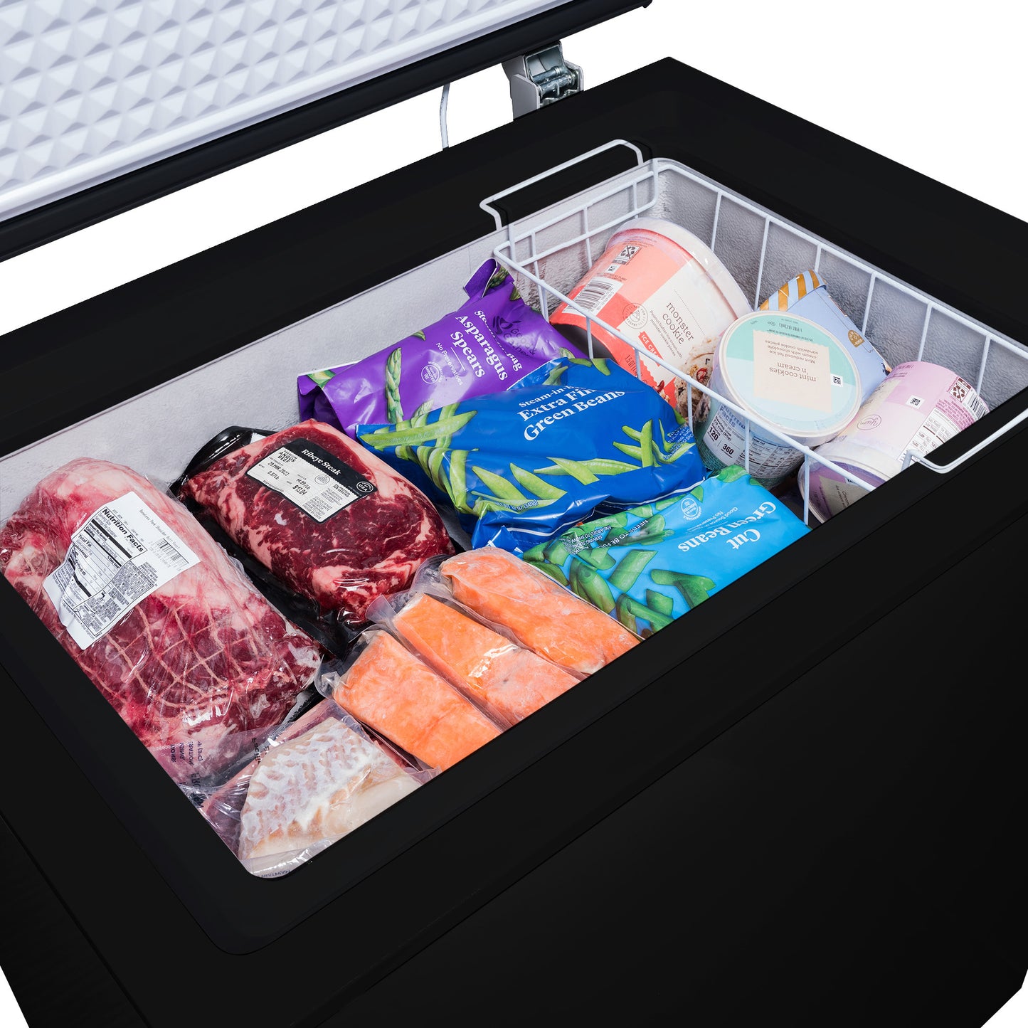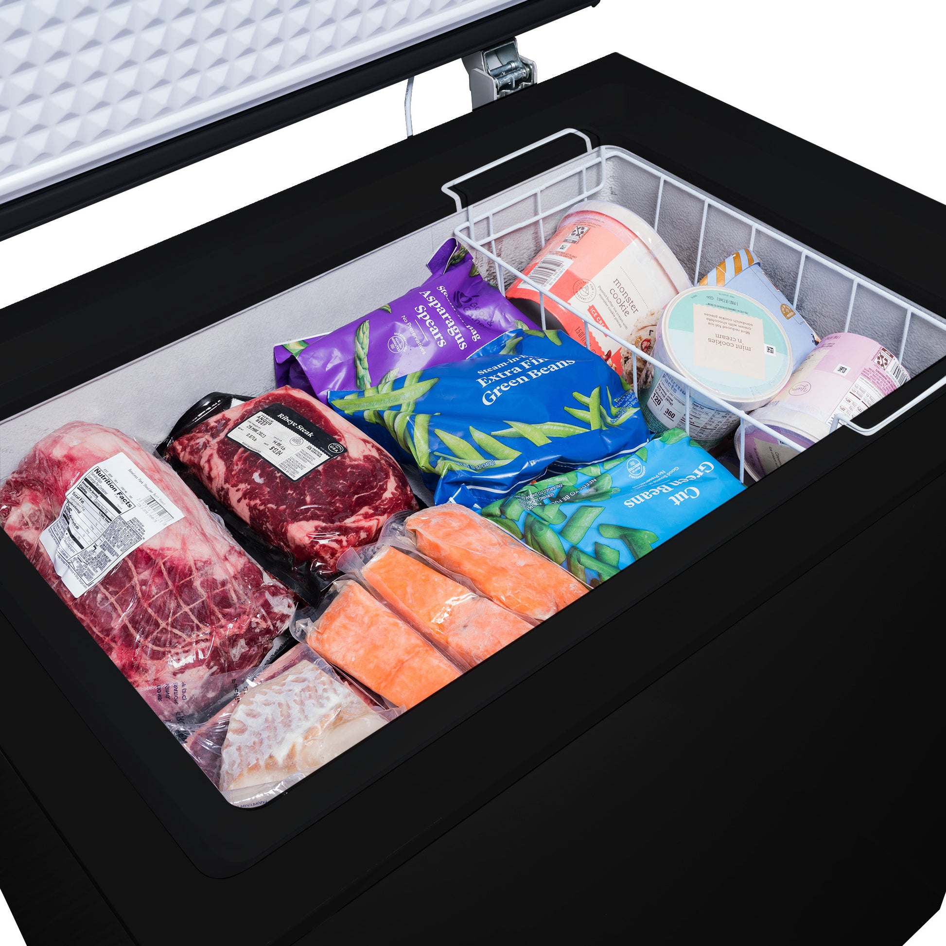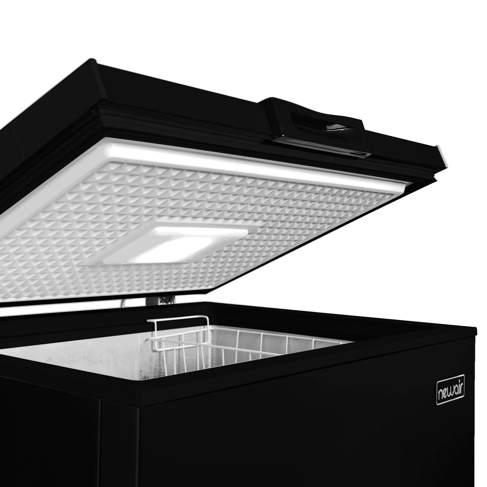 - The stay-open lid and LED light make restocking your compact deep freezer a breeze.