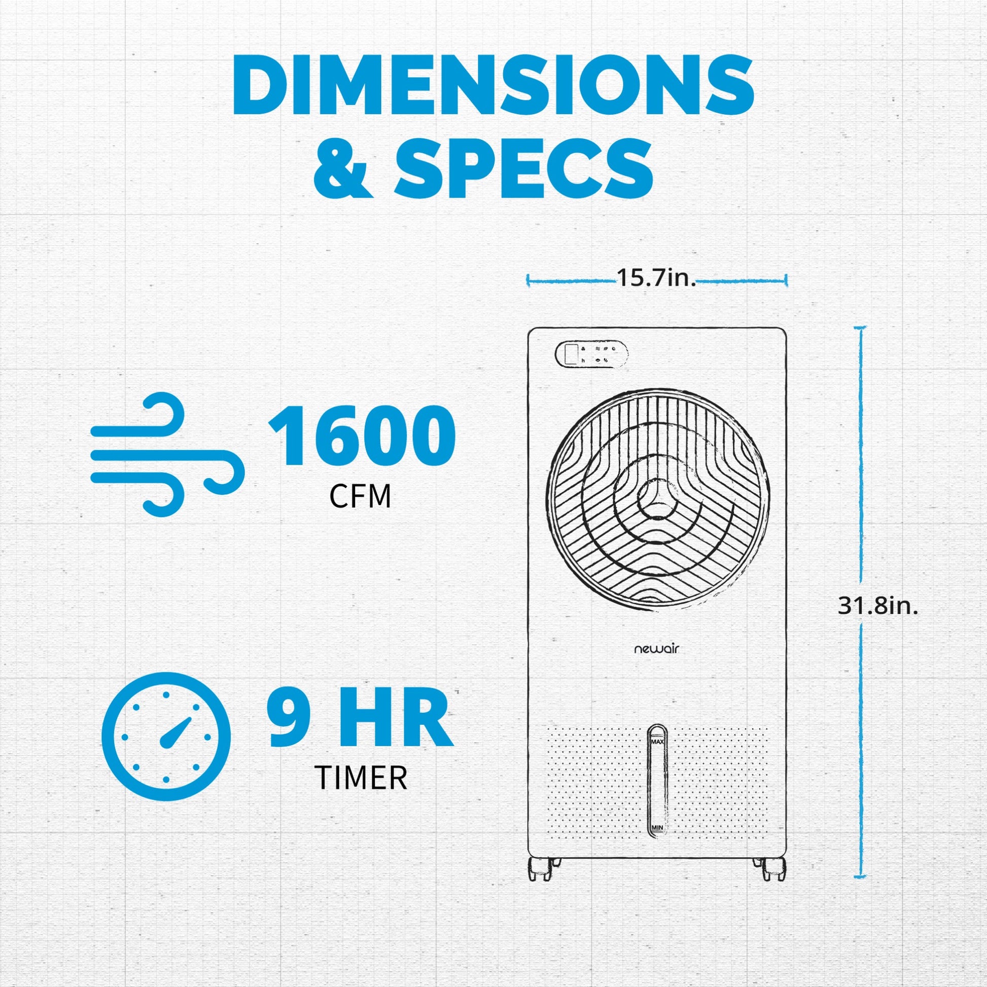 Newair® Evaporative Air Cooler and Portable Cooling Fan 1,600 CFM with Honeycomb Pad Cooling - White