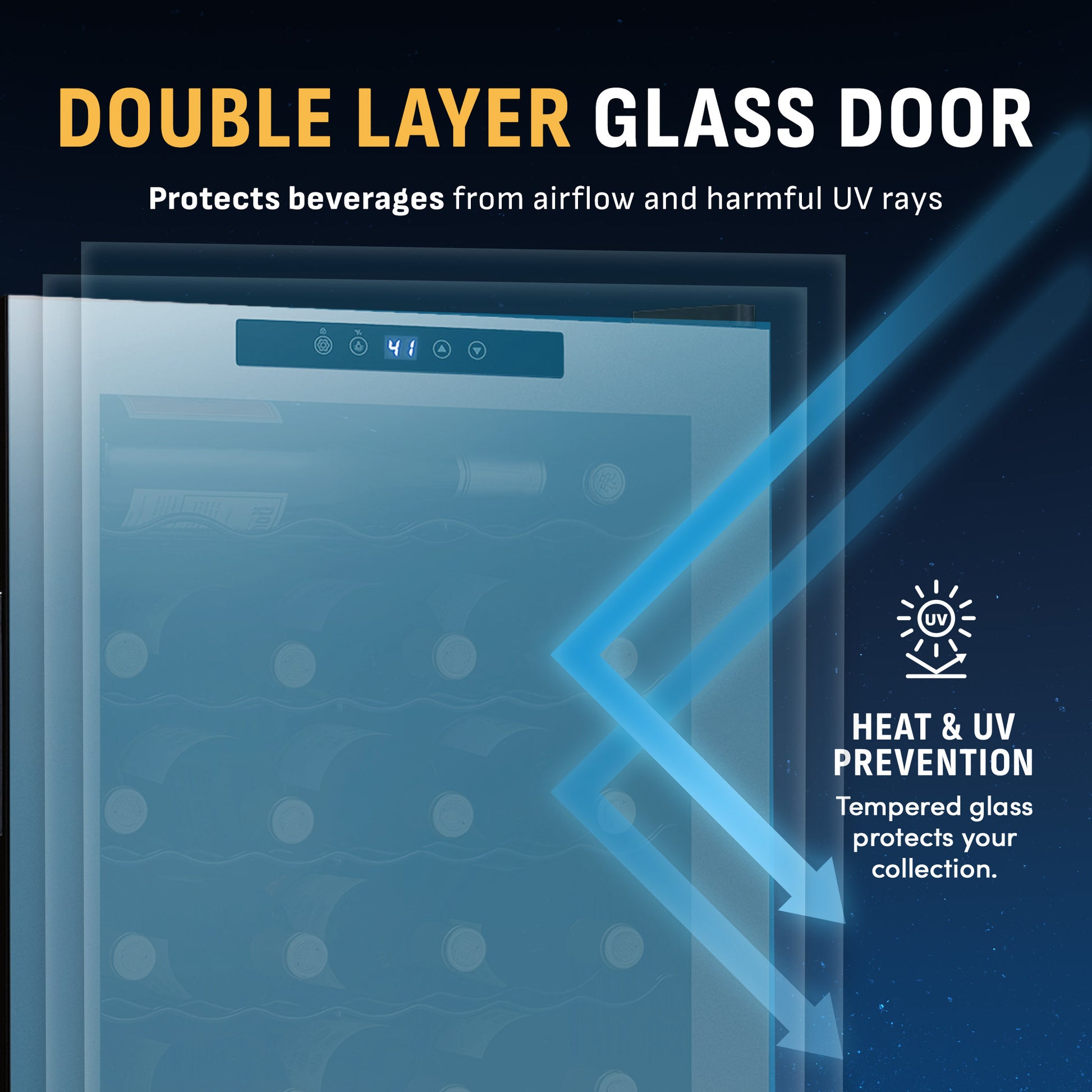 - Double pane glass insulates your precious inventory from potentially harmful UV rays.