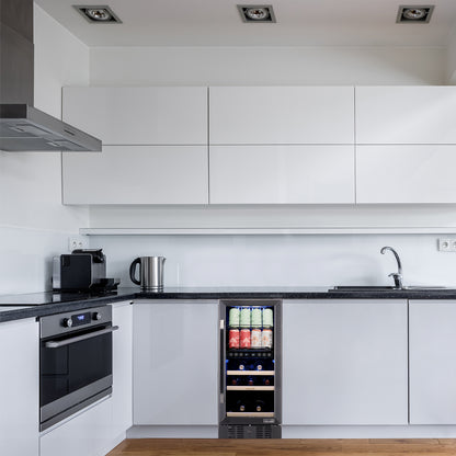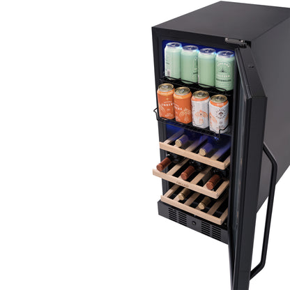 - The only 15” compact wine cellar with a spacious beverage center on the market.