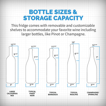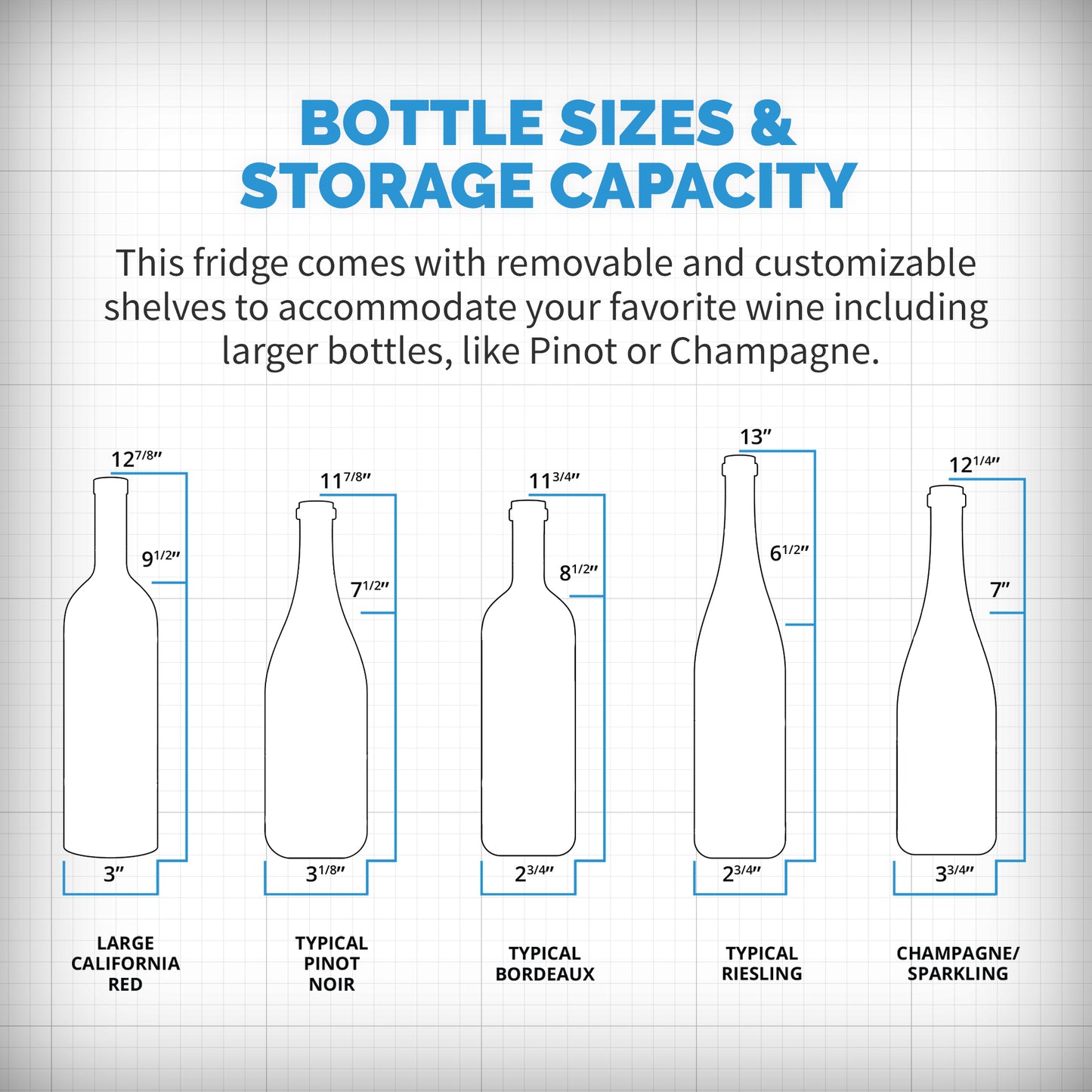 The quiet, powerful compressor cooling with a built-in fan system keeps your fridge at the ideal set temperature, for perfect tasting wine every time and carbonated drinks icy cold. The low vibration and consistent temperature preserves wine flavors and aromas until you are ready to serve up your favorite bottle. The airtight door seal locks in moisture and temperature to keep your collection in the ultimate condition for long-term storage.