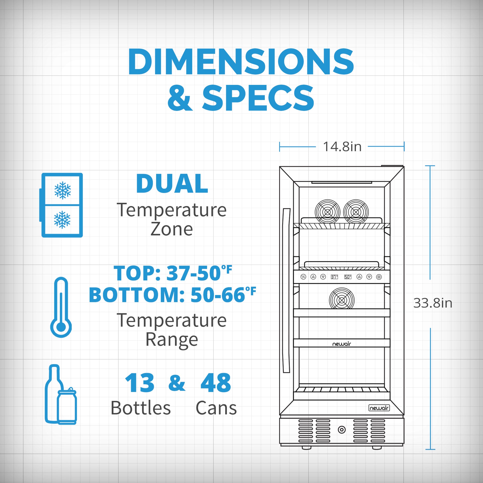 Newair® 48-Can, 13-Bottle Built-in Dual Zone Black Beverage Fridge - 15"