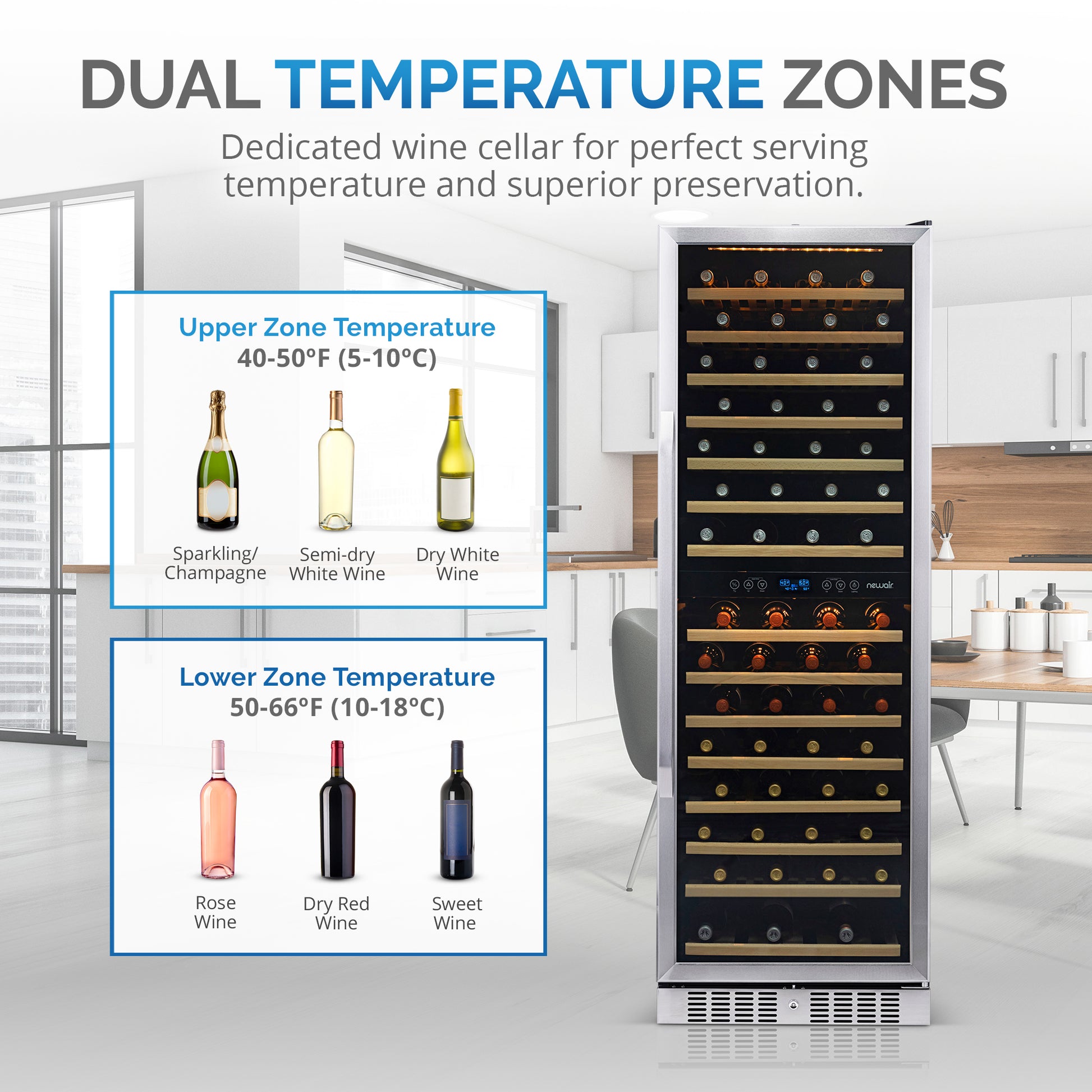 With a high-capacity compressor, the NewAir Dual Zone Wine Fridge ensures your entire wine collection is treated to even, circulated cooling with minimal noise. The result is your wine is cooled at the precise temperature you select from the dual zone LED temperature readout.