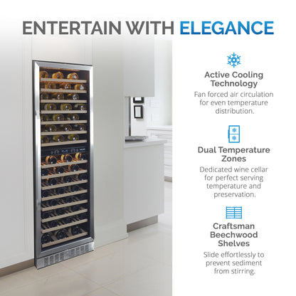 - Application: A colossal stainless steel dual zone wine cooler for preserving and enjoying a wine collection