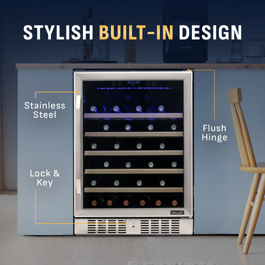 Newair’s wine refrigerators are perfect for protecting your wine investment, elevating your hosting experience, and enjoying top-quality wine with every sip. Use our wine coolers to age your favorite bottles, enjoy consistently cool, casual drinks, and make entertaining easier than ever. With features like sturdy beechwood shelves, UV-protected glass doors, and digital thermostats, our wine refrigerators deliver the stability and precision that any avid wine lover expects and appreciates.