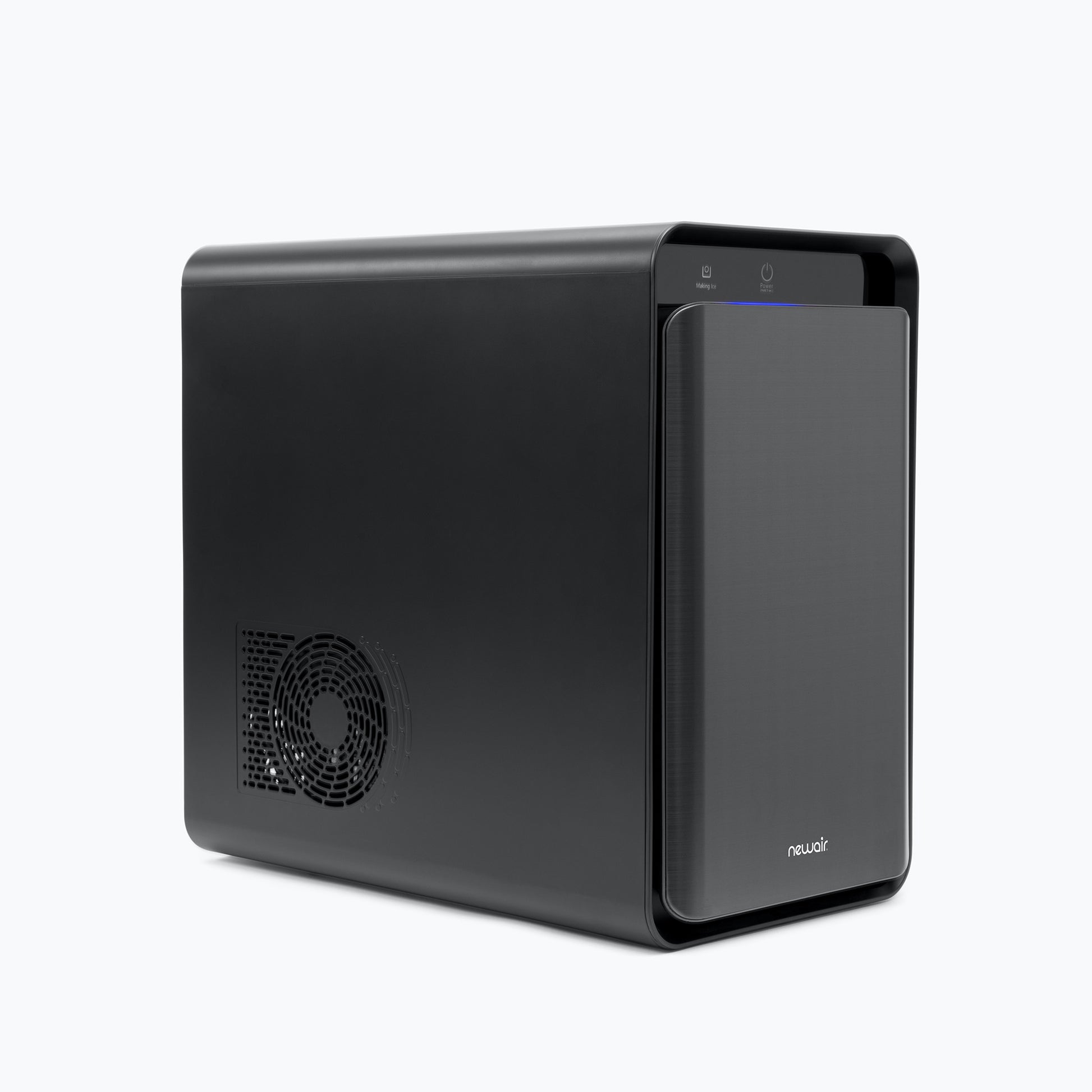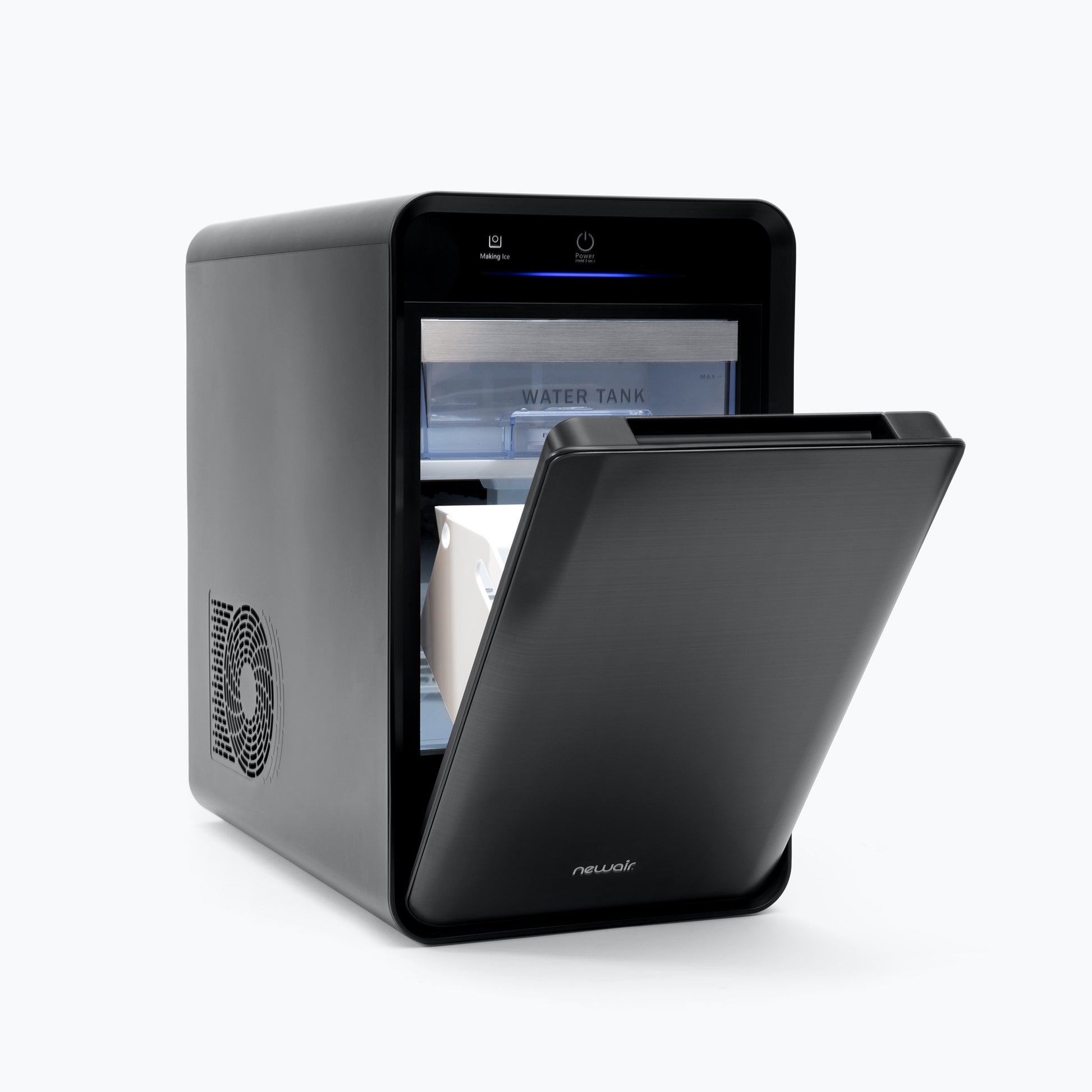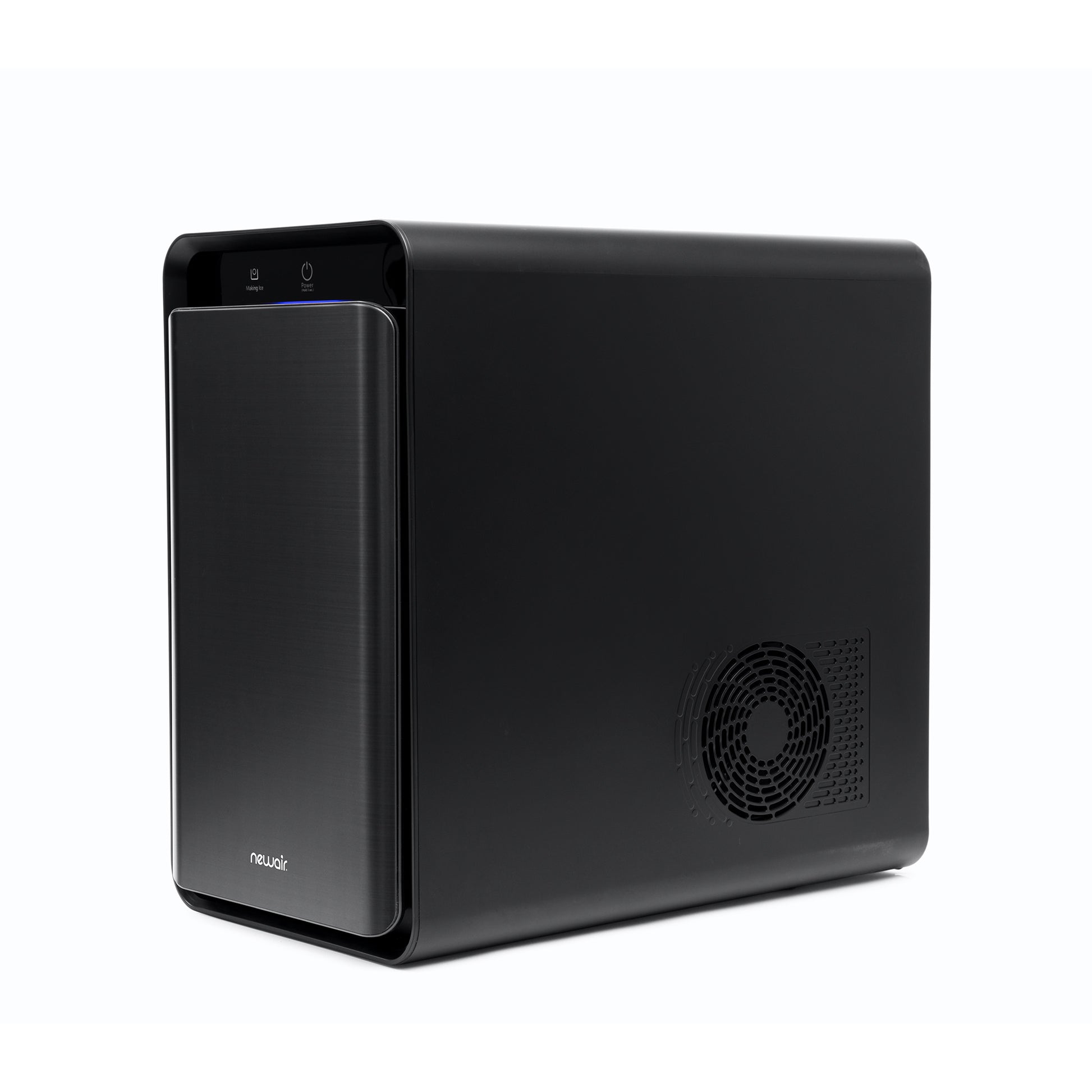 • Sleek, insulated black stainless-steel door keeps ice frozen for longer