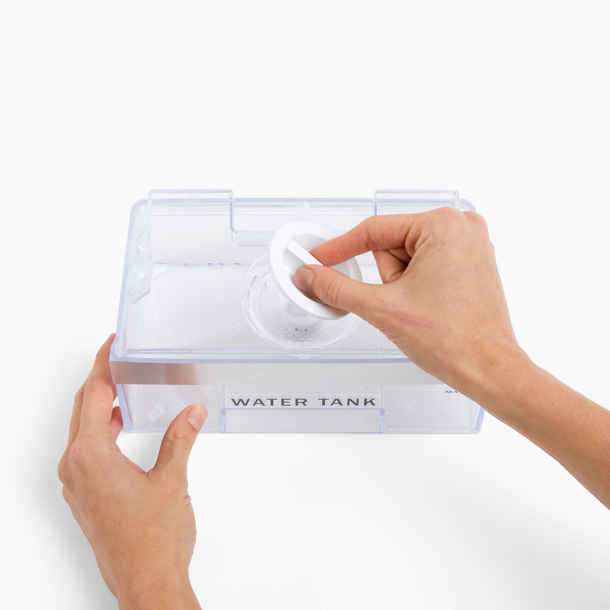 • Removable 34-fl oz water tank makes refilling easy and secure